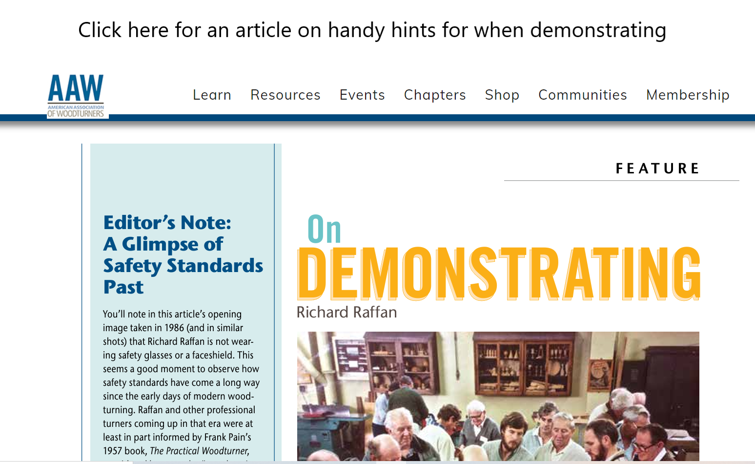 Following is a very useful article from the American Association of Woodturners. It has some handy information about doing presentations Click below for our Model Rules (for an Incorporated Association)